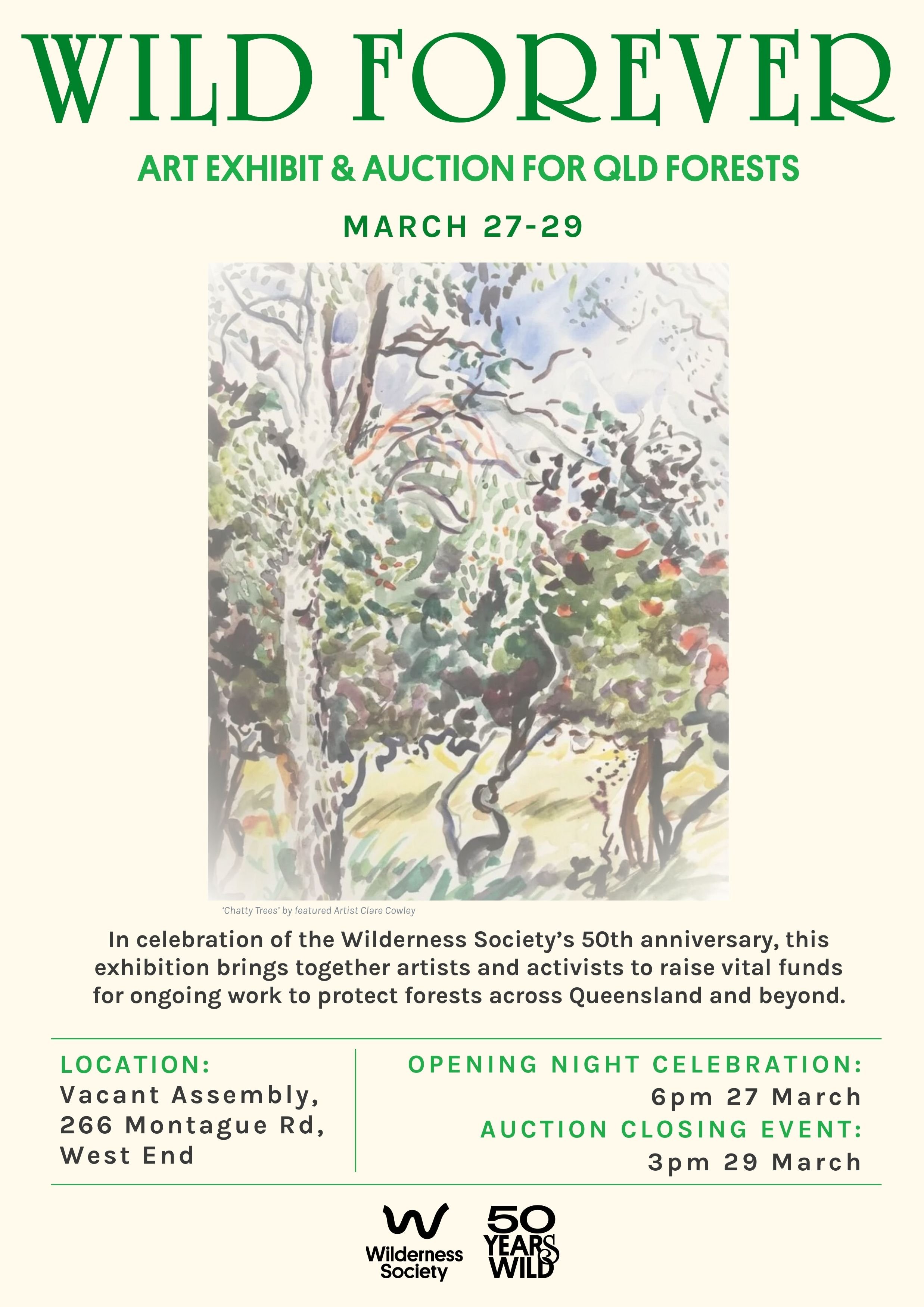 In celebration of the Wilderness Society’s 50th anniversary, this multi media art exhibition and auction will bring together artists and activists to raise vital funds for ongoing work to protect forests and threatened species across Queensland and beyond.